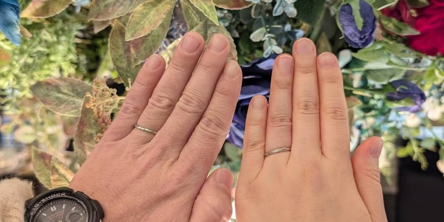 悩みながらもおふたりでじっくりと選ばれたからこそ、より愛着の湧く素敵な結婚指輪に仕上がりましたね。