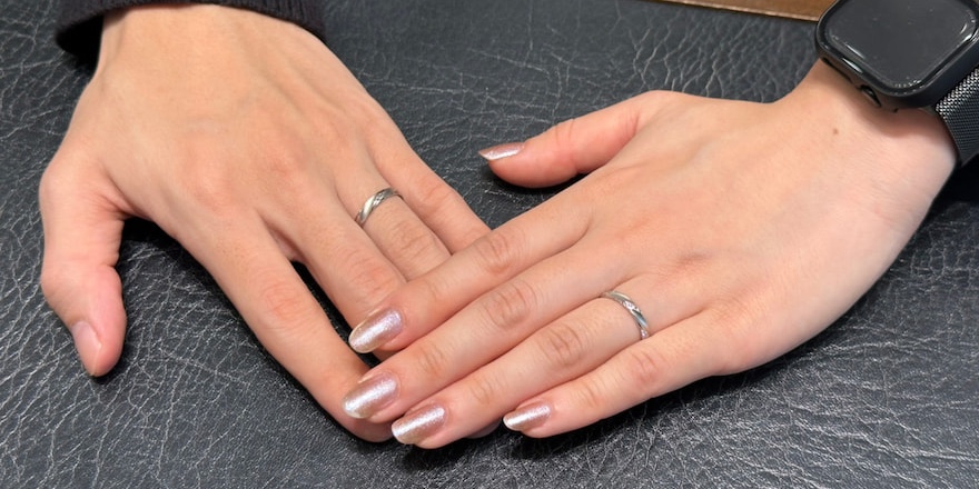 ご結婚指輪は様々なデザインをご試着いただきましたが、一番しっくりきたのがご婚約指輪と同じことのはでした。