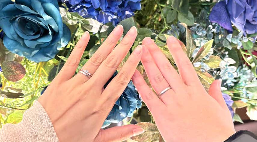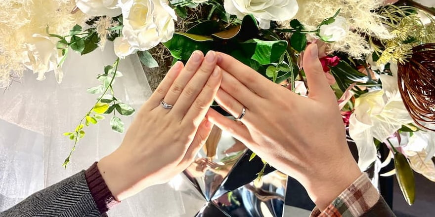おふたりには、婚約指輪は白鈴、結婚指輪は単衣をお選びいただきました。
