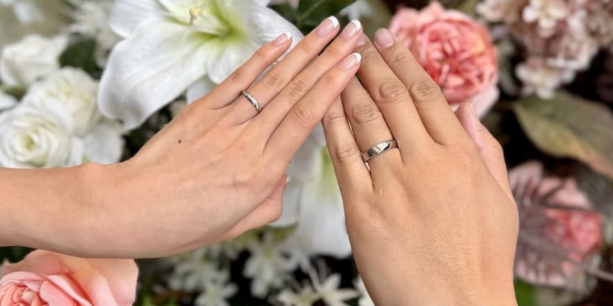 手元に馴染む柔らかいウェーブラインが優しい雰囲気のおふたりにとてもお似合いでした。