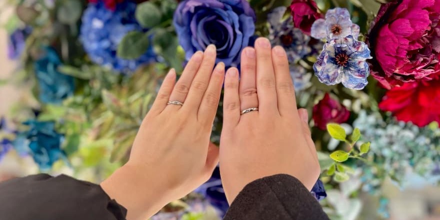 出会った二人の心と心を繋ぎ、優しくあたたかな未来へと導く架け橋となりますよう思いを込めたデザインです。たくさんある結婚指輪の中から、おふたりの好みがこめられた特別感あるペアとなりましたね。とてもお似合いでした!この度はご結婚誠におめでとうございます。大切な指輪選びのお手伝いに携わることができて光栄です。おふたりの絆の証として末長くご愛用くださいませ。
