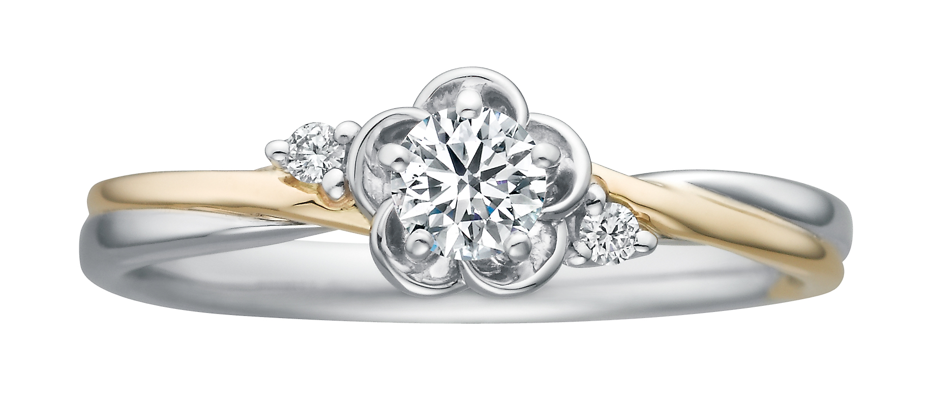 結婚指輪は、婚約指輪と合わせてプラチナとゴールドのコンビに。