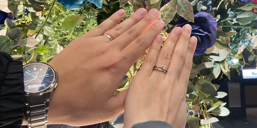 せっかくならと、お揃い感を大事に、おふたりでゴールドの位置を合わせて特別仕様でお作りいただきました。