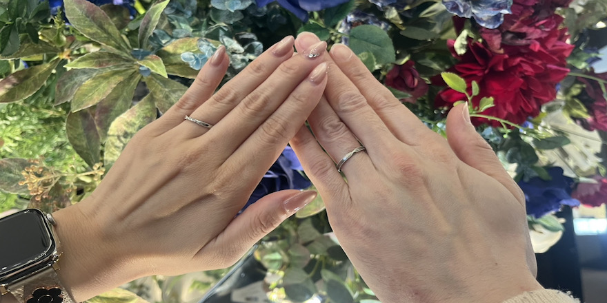 仕上がった指輪はとても綺麗で、「この指輪にして本当によかった」と心の底から喜んでくださいましたね。おふたりの指輪選びをお手伝いできましたこと、大変嬉しく思っております。
