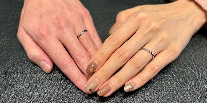 今回選ばれたのは手元に馴染み自然につけられるウェーブフォルムの結婚指輪。さりげないながらも上品な華やかさを纏います。