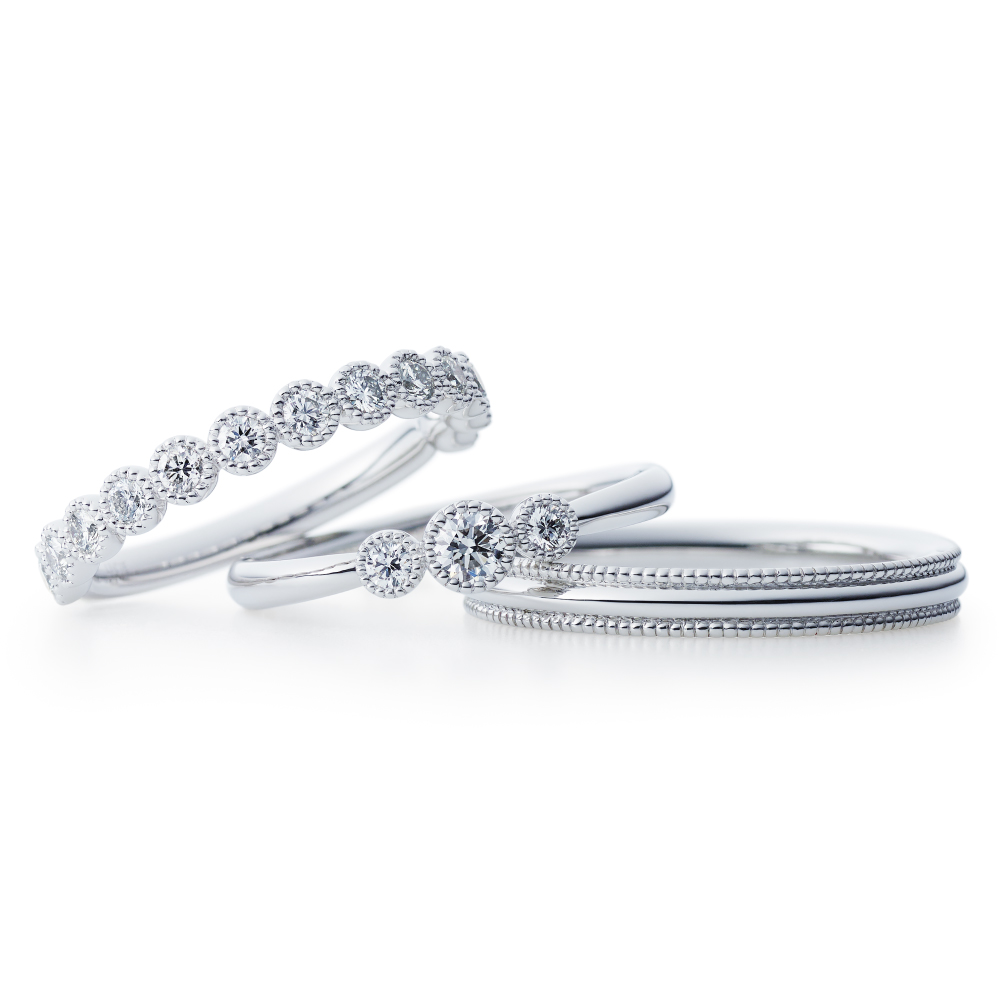 男性様から贈っていただいた婚約指輪との重ね着けも素敵です。