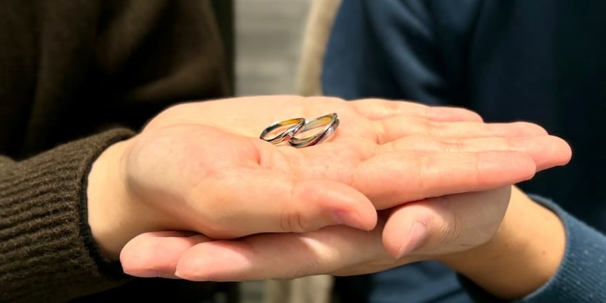 たくさんの種類の中から選べるからこそじっくり悩みましたが、より一層愛着の湧く唯一無二の結婚指輪となりましたね。