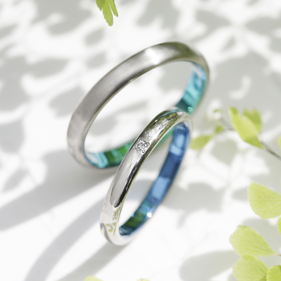 「タンタル」と「ピンクダイヤモンド」それぞれにめずらしさ、レア感をそろえてお選びいただいたご結婚指輪。おふたりらしさあふれる素敵な組み合わせになりました。ご結婚指輪と共に末長くお幸せに!