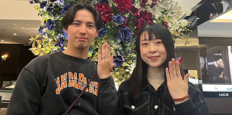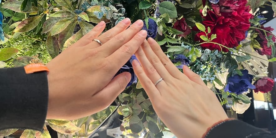 そんなおふたりは、お互いの好みを尊重してそれぞれが好きなデザインの結婚指輪をお選びいただきました。