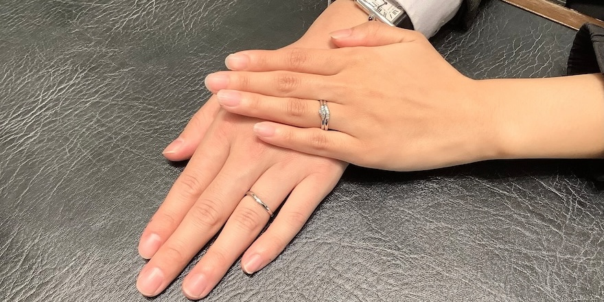おふたりには、婚約指輪は白鈴、結婚指輪は単衣をお選びいただきました。