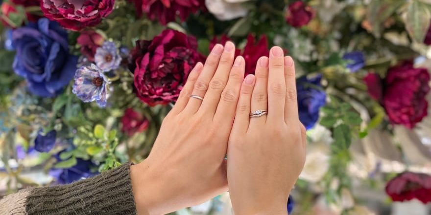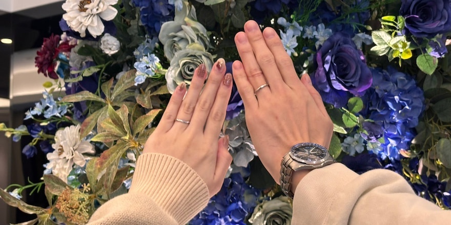 個性を出しつつもシンプルさと機能美を兼ね備えた素敵な結婚指輪になりましたね。どんなお洋服でも似合い、指元を華やかにしてくれます。ご夫婦様の絆の証として末長くご愛用くださいませ。