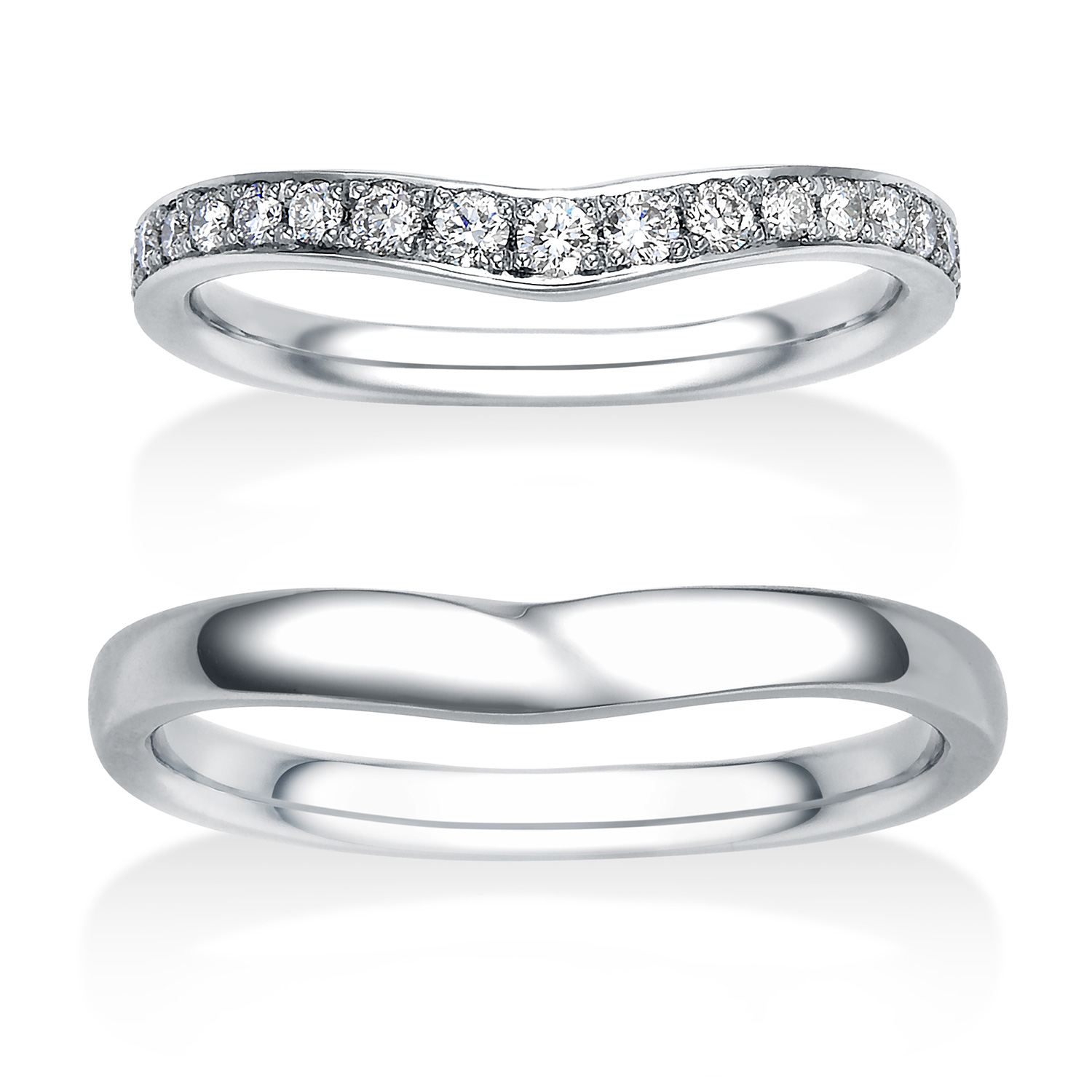 V字ラインのデザインにダイヤモンドが半周セッティングされた華やかなデザイン。