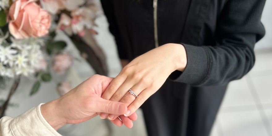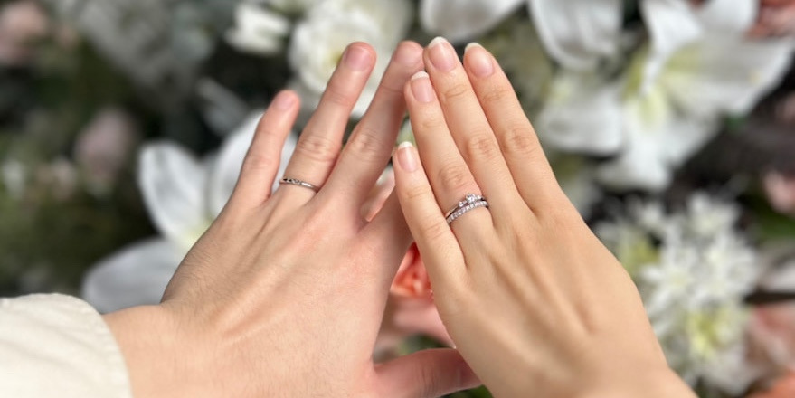 ご主人様からサプライズで贈られたご婚約指輪との重ね着けも、統一感があり素敵なコーディネートになっておりましたね。