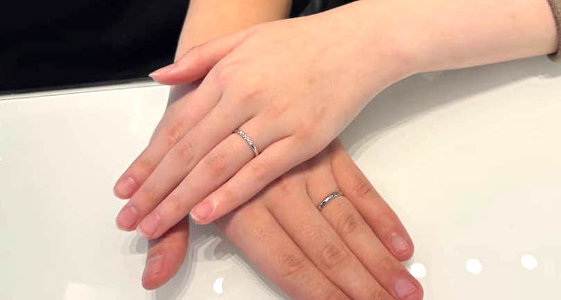 婚約指輪との重ねづけがとても美しい結婚指輪をお選びいただきました。