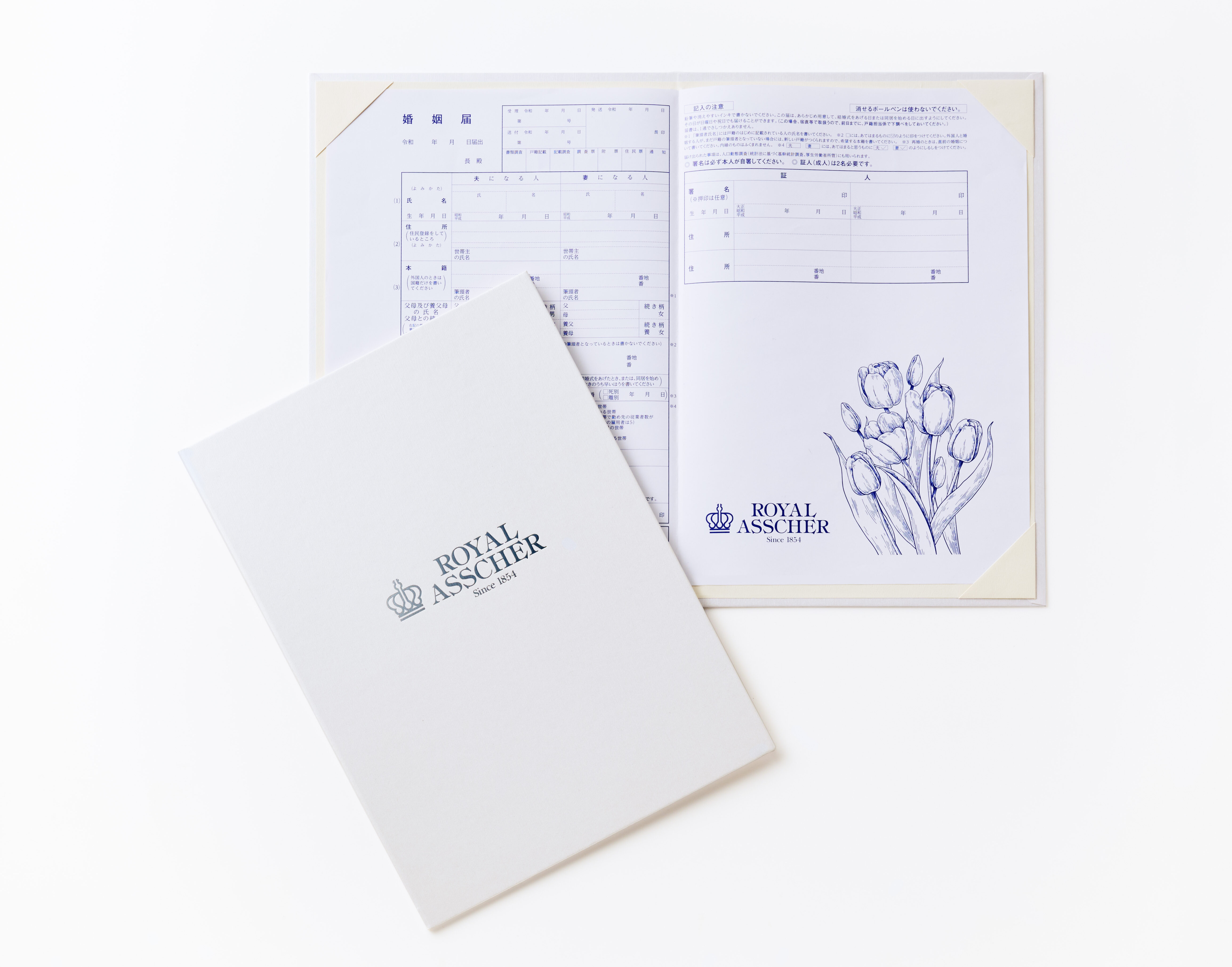 マリッジリング(エタニティリングを含む)をご成約のお客様に、オリジナル婚姻届をプレゼントいたします。