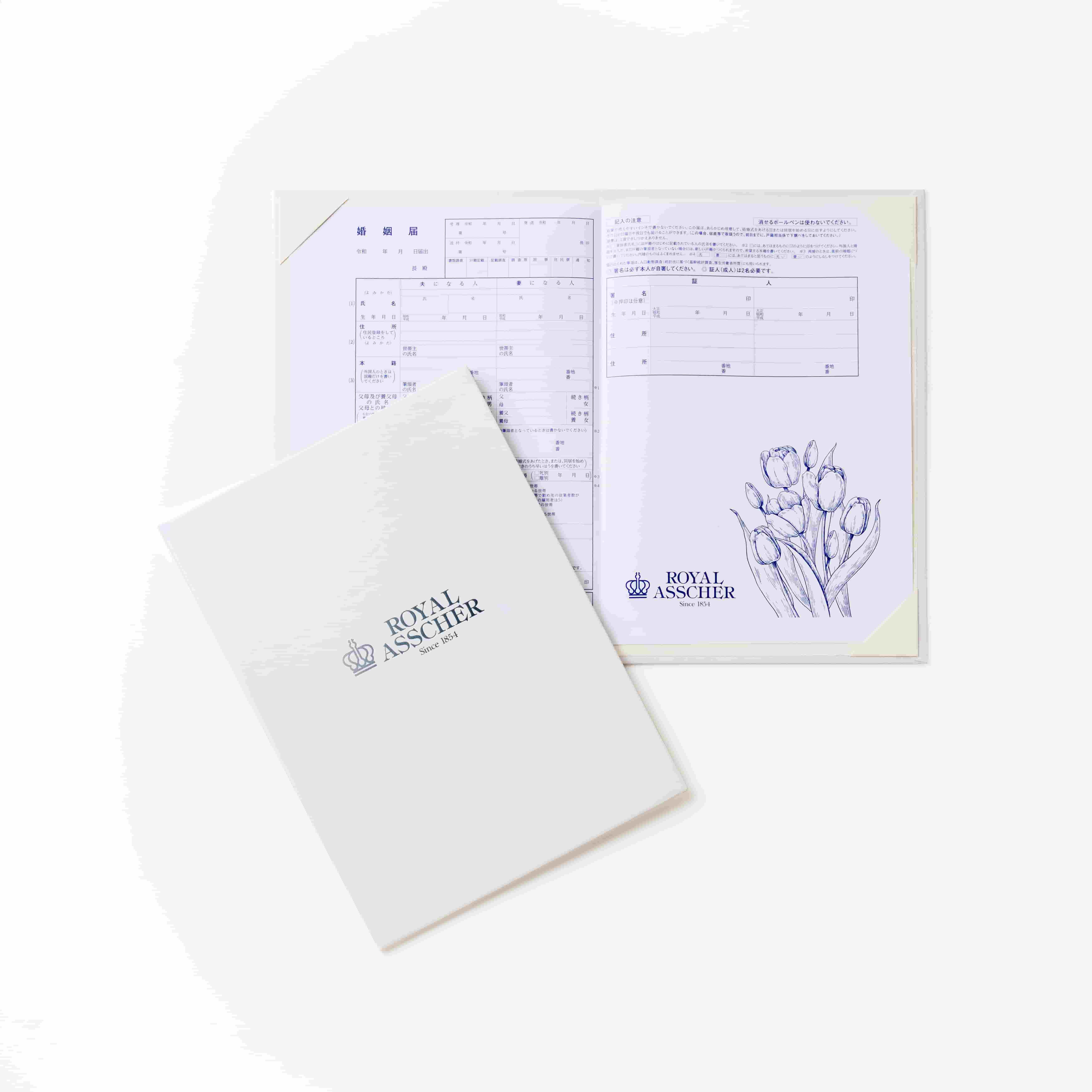 オランダの国花であり、「思いやり」の花言葉を持つチューリップがデザインされた婚姻届です。