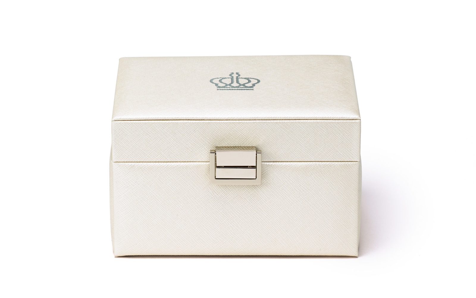ブランドを象徴する「クラウンマーク」をアクセントに、ホワイトを基調とした高級感あふれるボックスです。