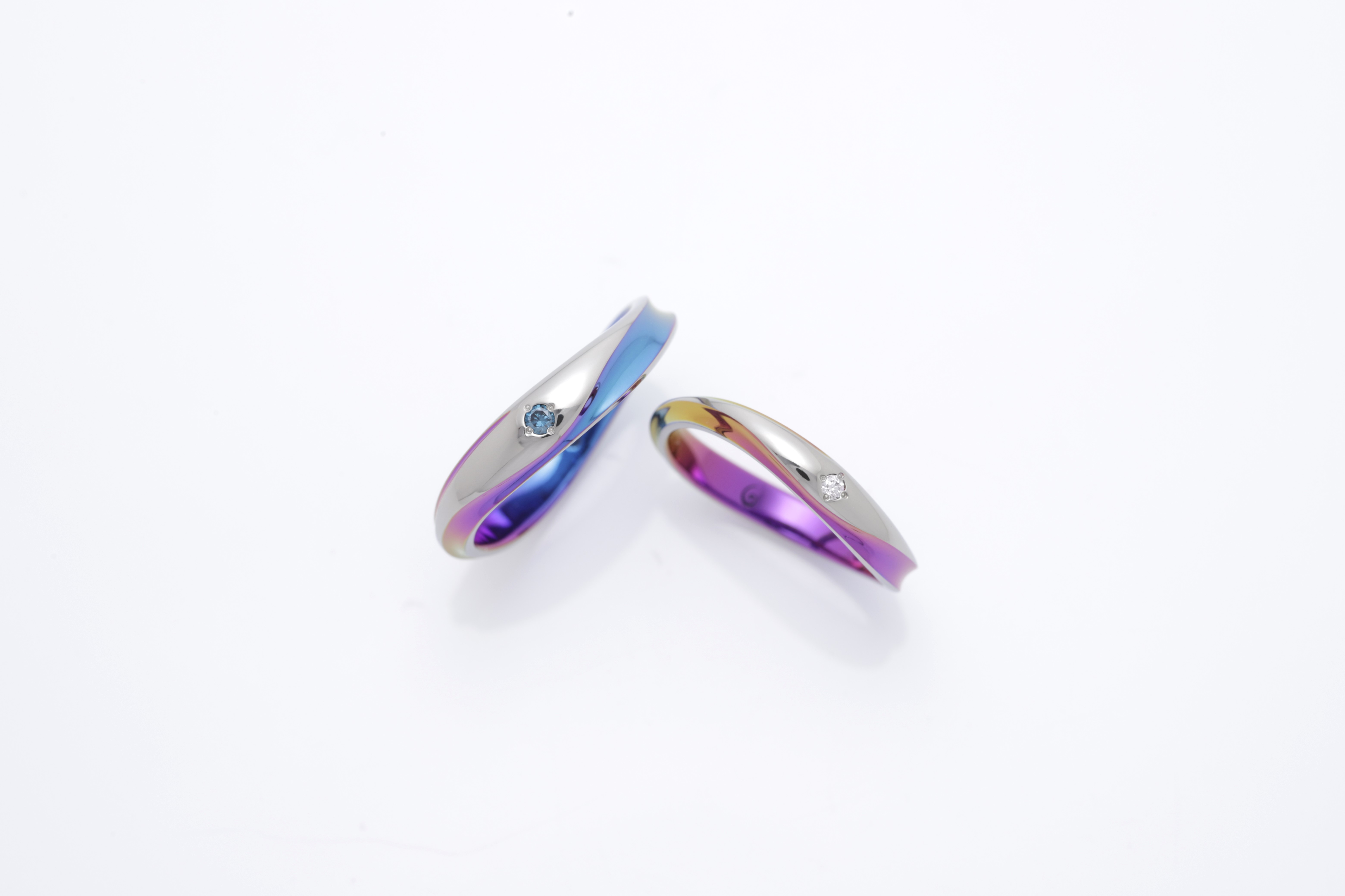 二人の想いを込めた個性のある結婚指輪。ぜひ想いと共に特別なダイヤモンドをセッティングされてはいかがでしょうか?