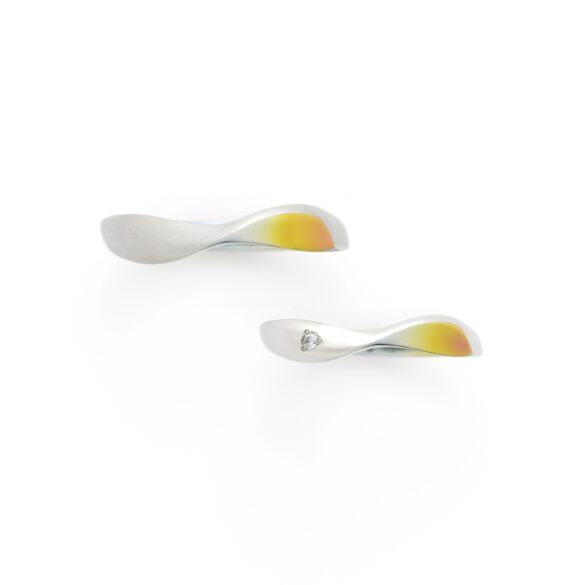 地平線の彼方から朝日が昇り、山々の稜線を彩る夜明けの景色を、くびれのあるフォルムと発色で表現。
