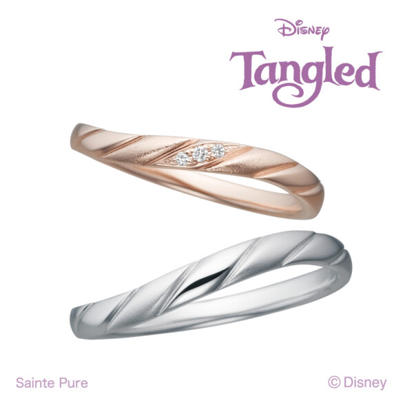 結婚指輪は舟形のダイヤモンドセッティングにより、灯籠を手に向かい合うふたりの姿を、婚約指輪はそこから空に放たれた無数の灯籠の光を表現しています。