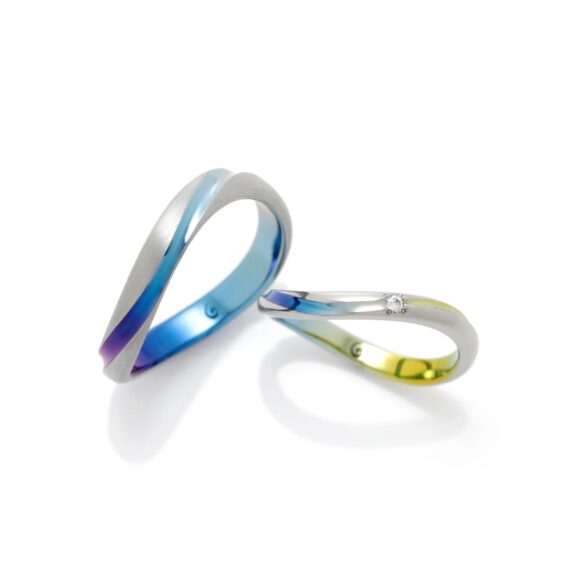 ゆるやかなウェーブのフォルムに曲線を描いたラインが一周するデザイン。ラインの発色によって、シンプルな中にも豊かな表情を持つリングです。