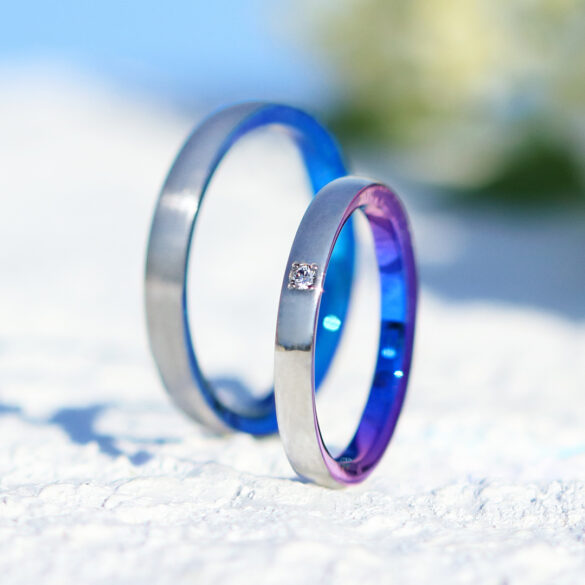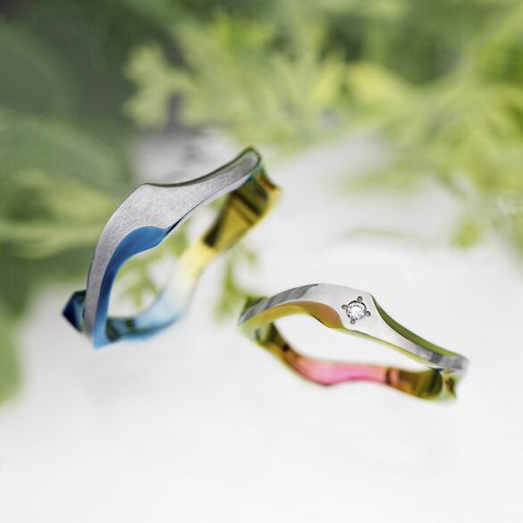 晴れた日のおだやかな日差しの中に、まっすぐに伸びた道を表現した結婚指輪。ふたりがこれから歩む人生をイメージしています。