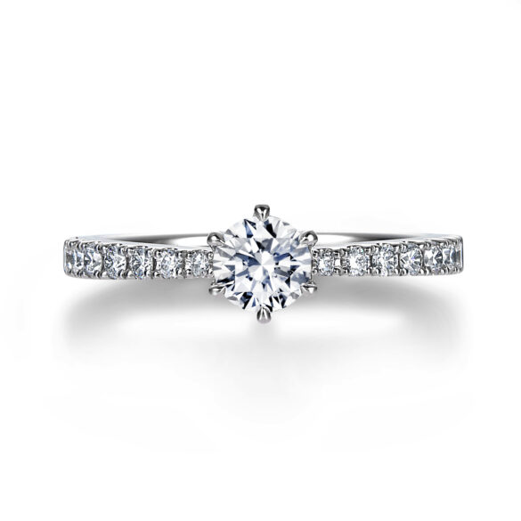 「Yes」の意味。確かな誓いとしてしっかりとしたアーム、横からはメレダイヤモンドが覗きます。
