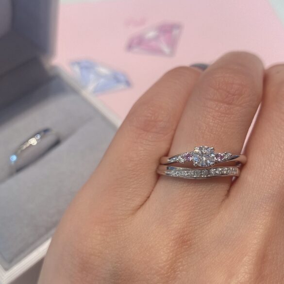 ふたりの幸せを祝福するピンクとホワイト2色の華やかなダイヤモンドの可愛らしい組み合わせが花嫁の夢を一緒に叶えてくれます。
