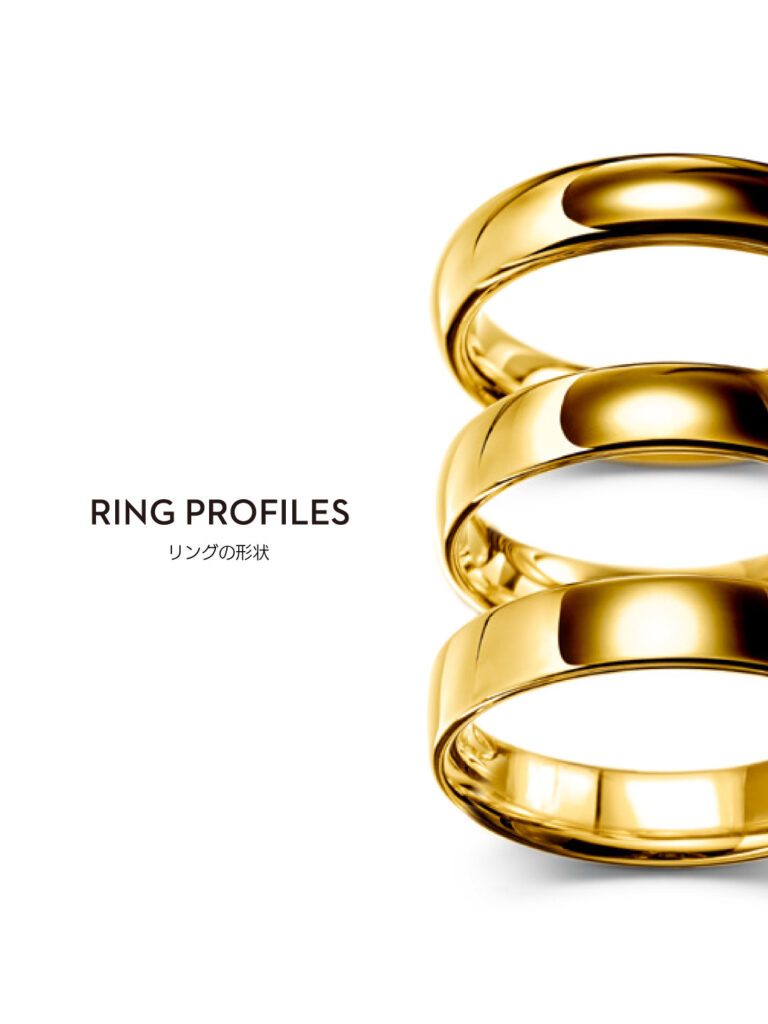 内側の仕上げやリング幅が一緒でも、すべての指輪が同じつけ心地というわけではありません。外側のデザイン(形状)によって変わるのが「指あたり」です。