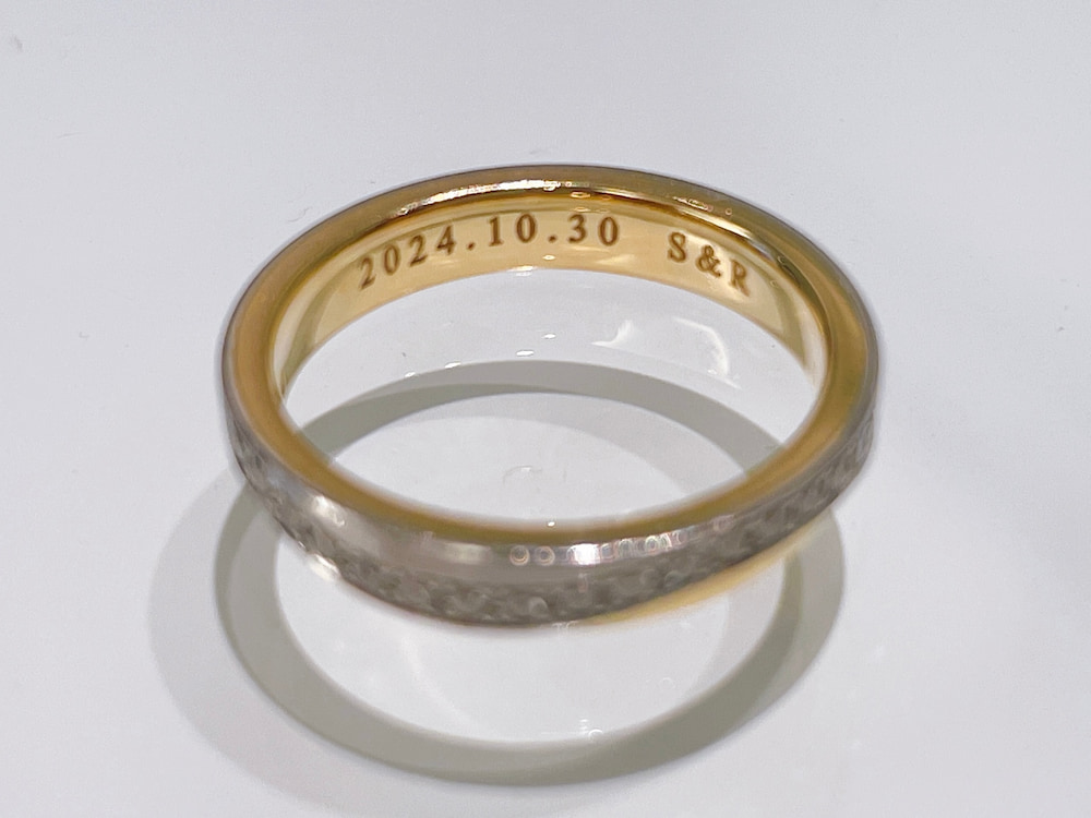 結婚指輪の内側には、記念日やイニシャルなどを入れておふたりらしくオーダーしたいですよね。モニッケンダムはなんと文字入れがサービス。字体もブロック体と筆記体から選ぶことができます。