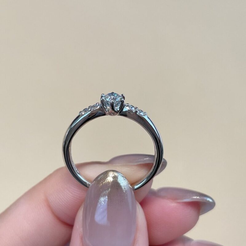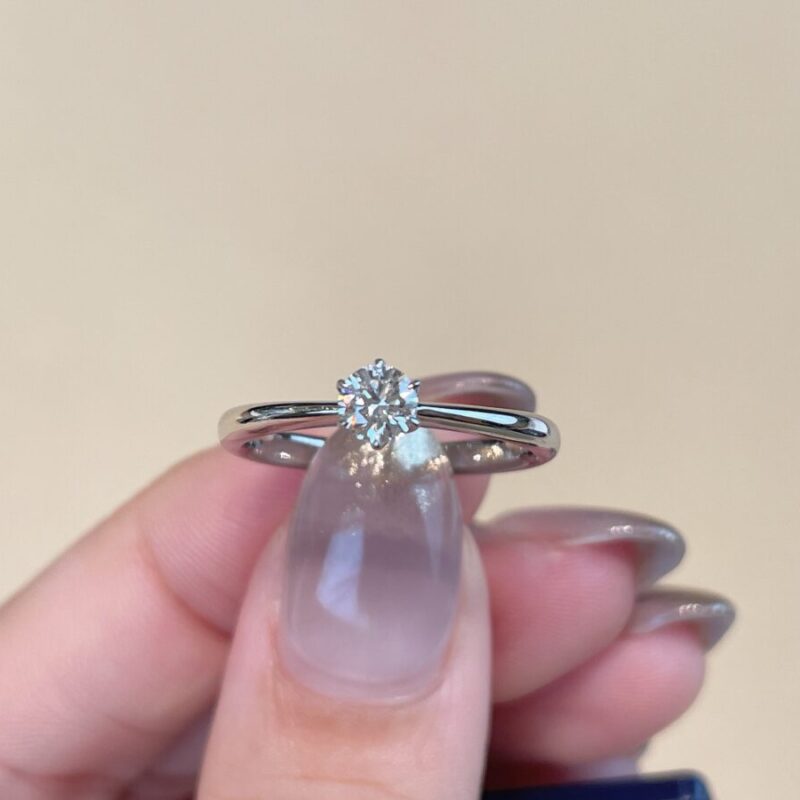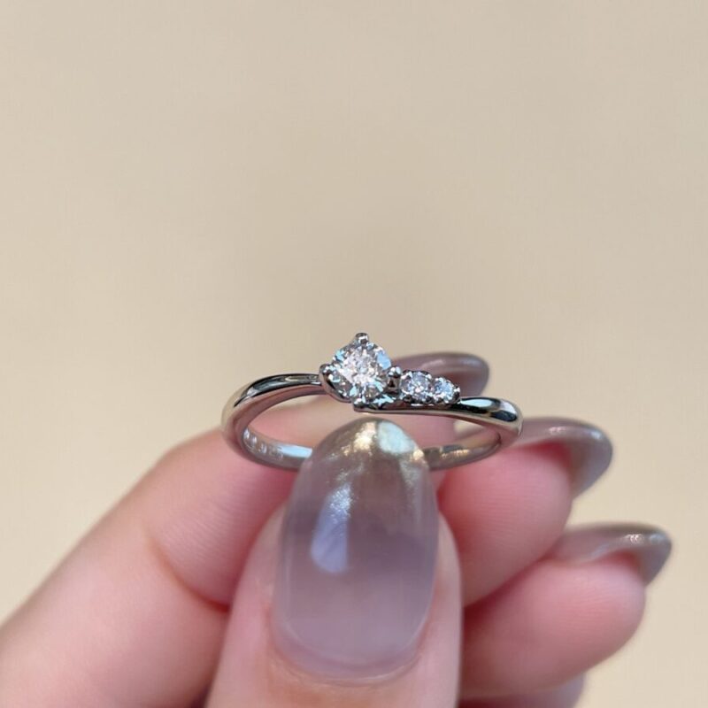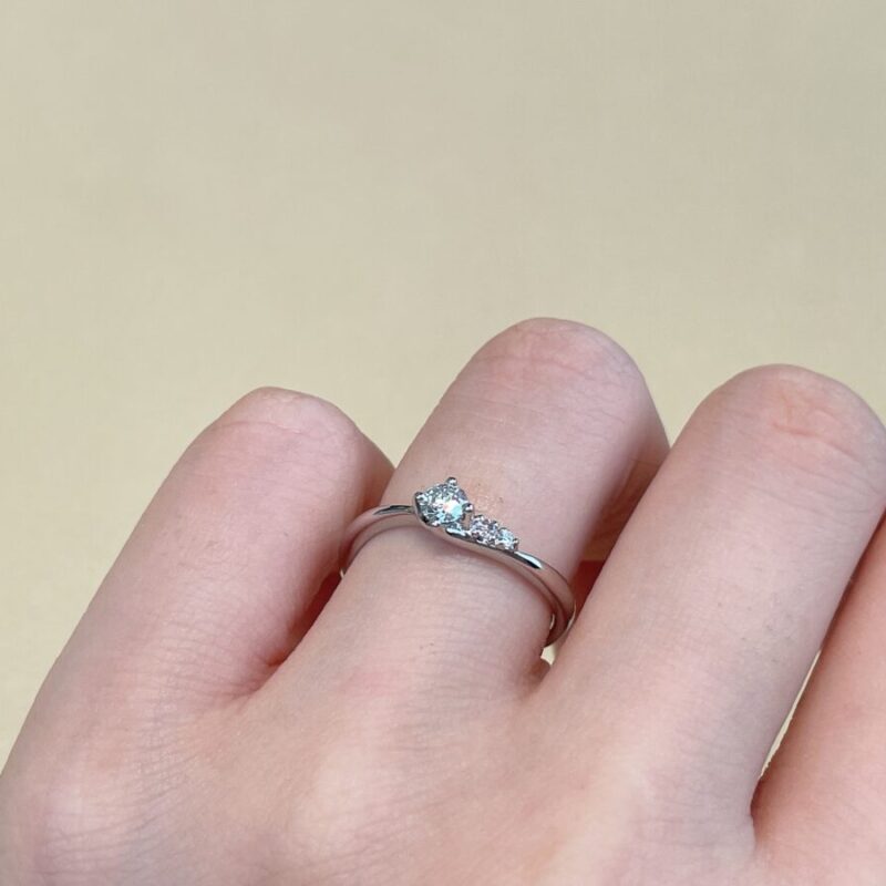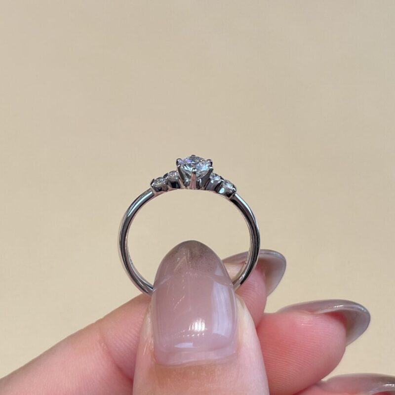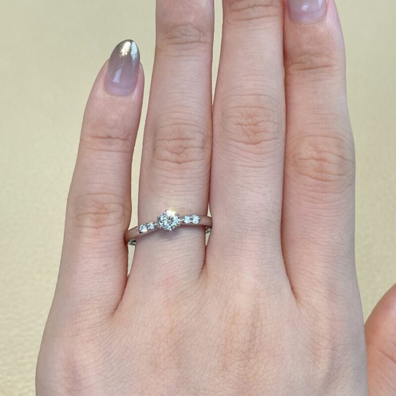 ダイヤモンドが高く持ち上げられているため、結婚指輪との重ね着けがしやすく今後の楽しみが広がります。