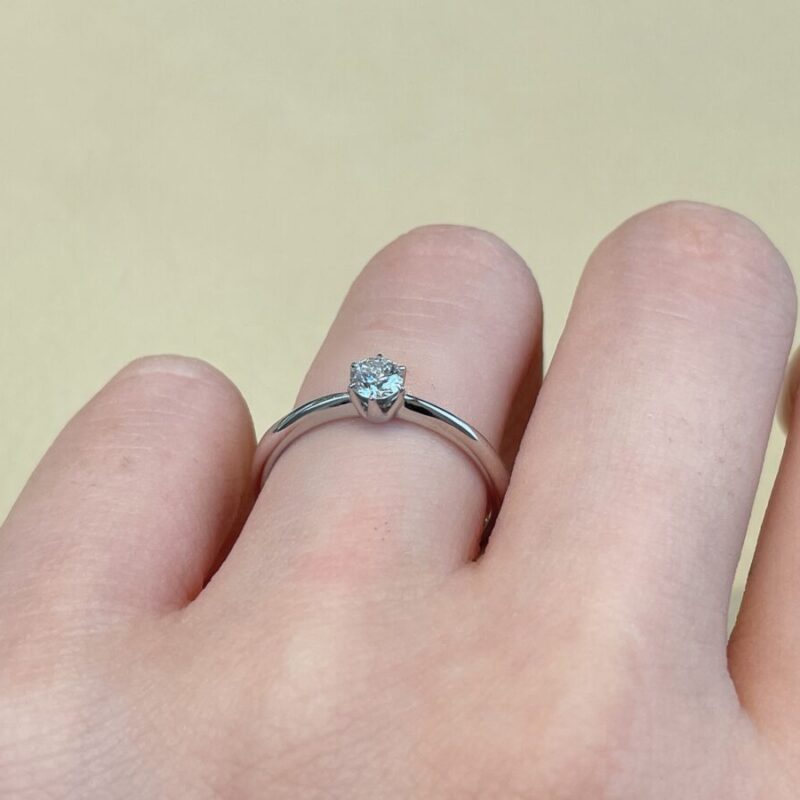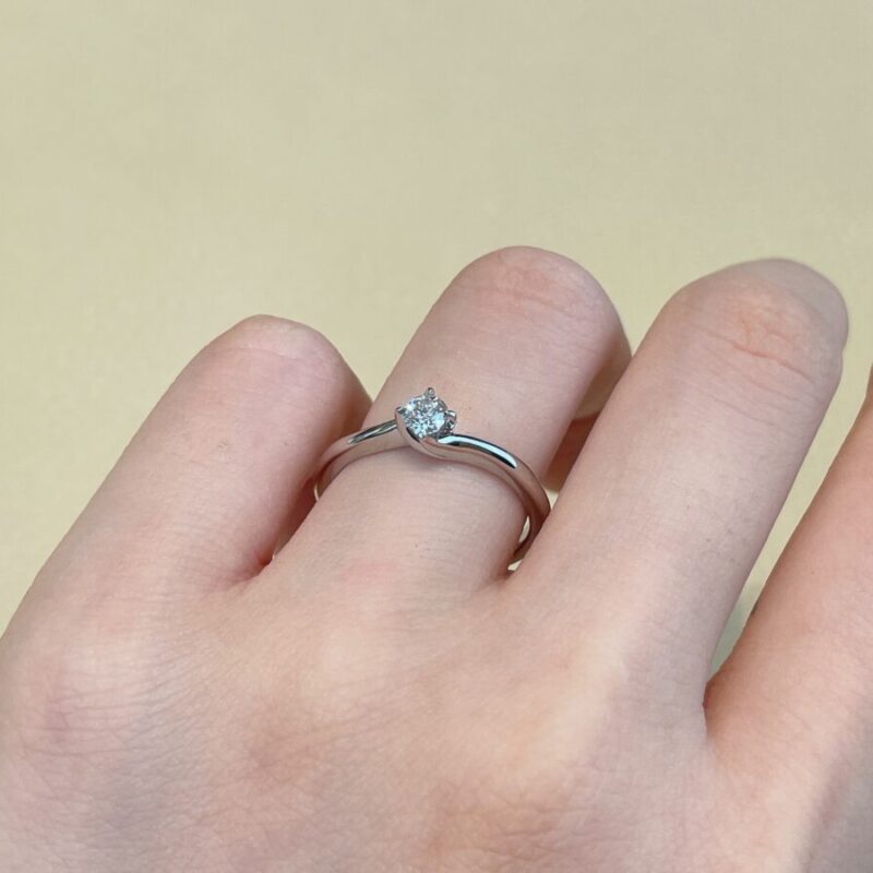 ダイヤモンドの美しさを引き立たせる究極のシンプルデザインです。誰が見ても一目で婚約指輪だとわかる象徴的なデザインは女性の憧れ。アーム部分は中央に向かって細く絞られ、手元をすっきりと見せてくれます。