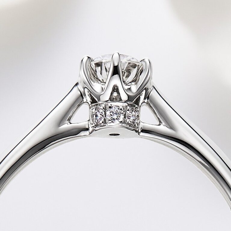 ダイヤモンド台座の高さが抑えめで、日常使いもしやすい婚約指輪です。