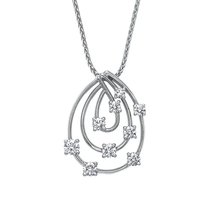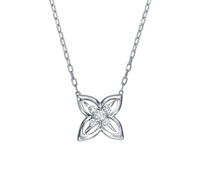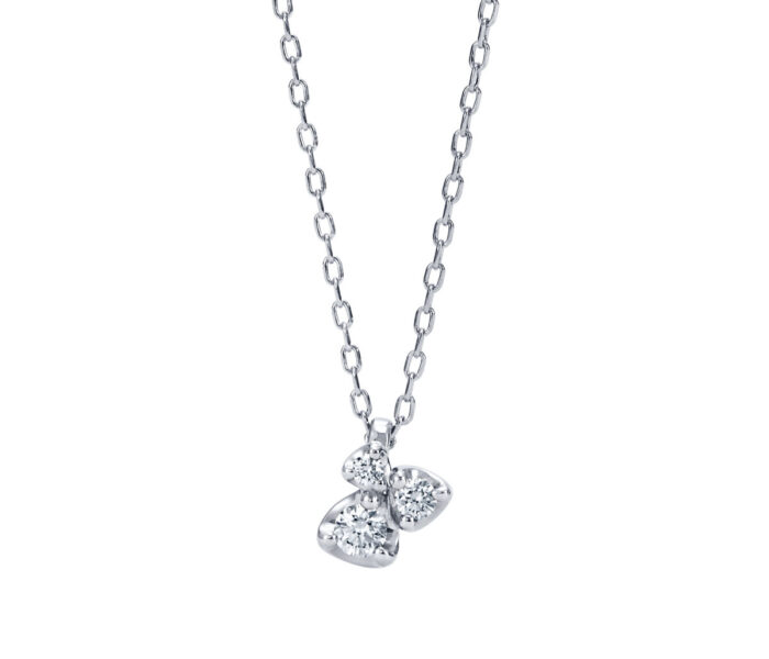 最高の原石と最高のカッティング技術の二つが生み出す、透明感あふれる白く上品な輝きはブライダルのシーンにもぴったりで、婚約ネックレスとして多くの人に選ばれています。