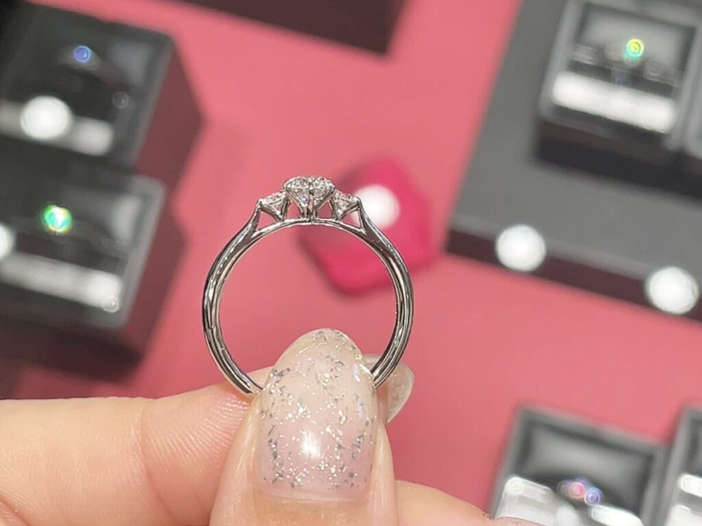 画像を見るだけでは実際に着けた時の立体感がわかりにくいです。横顔にこだわって婚約指輪を選びたいなら、ショップで実際に手に取りながら様々な角度から見てみるといいですよ。
