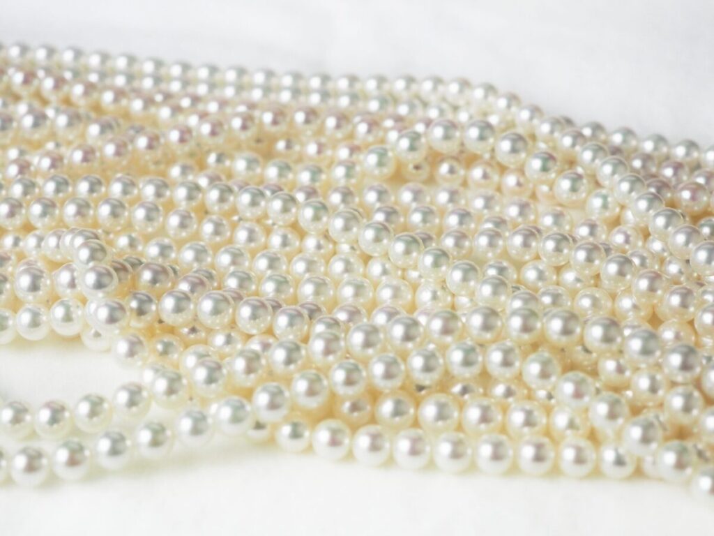 すべての真珠が同じ環境で育っているため、経年変化のスピードも揃います。10年20年と使う中で、色ムラがが生まれにくいのです。