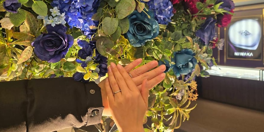 この度はお二人の大切なサプライズから結婚指輪までお手伝いさせていただき、誠にありがとうございます。絆の証として末長くご愛用くださいませ。