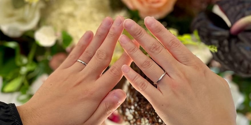 おふたりには、婚約指輪は白鈴、結婚指輪は単衣をお選びいただきました。