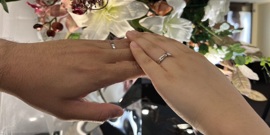 おふたりのお好みに合うリングに出逢っていただくことができてよかったです。とてもよくお似合いでした!末永くお幸せに!